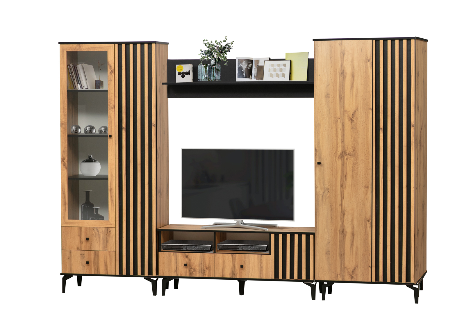 Стенка «Либерти 4» (дуб вотан/черный/профиль дуб вотан) Олмеко