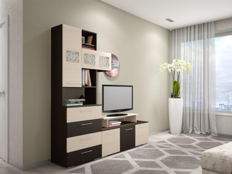 код 106023Стенка имеет большое количество выдвижных ящиков. Смотрится ярко и современно.