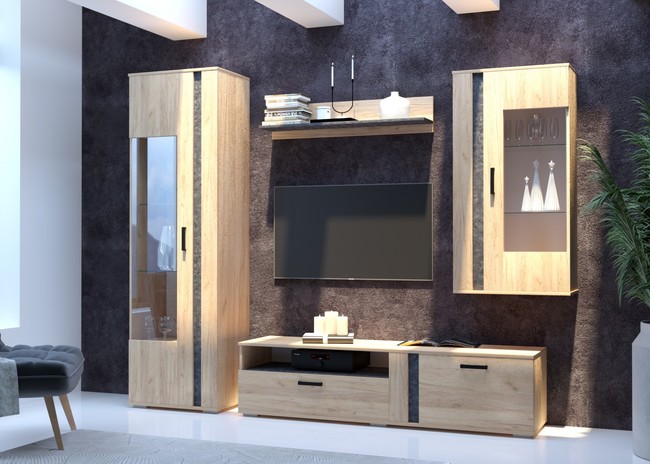 Гостиная «Трамп» Комплект 1 - Метрополитан грей/Крафт (BTS)