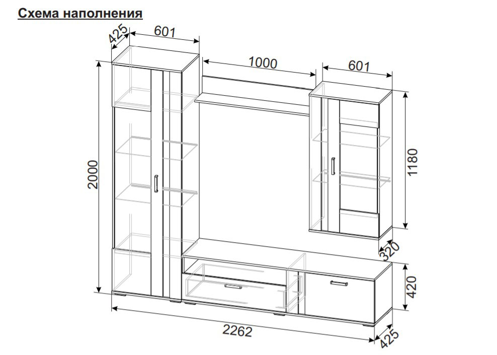 Размер (ШхГхВ): 3108х362х2075 мм. Материал: ЛДСП, МДФ.