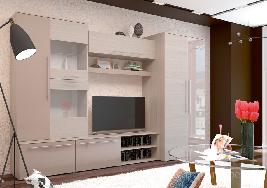 код 73085Современная стенка с глянцевыми элементами на фасаде гармонично впишется в интерьер вашей гостиной.