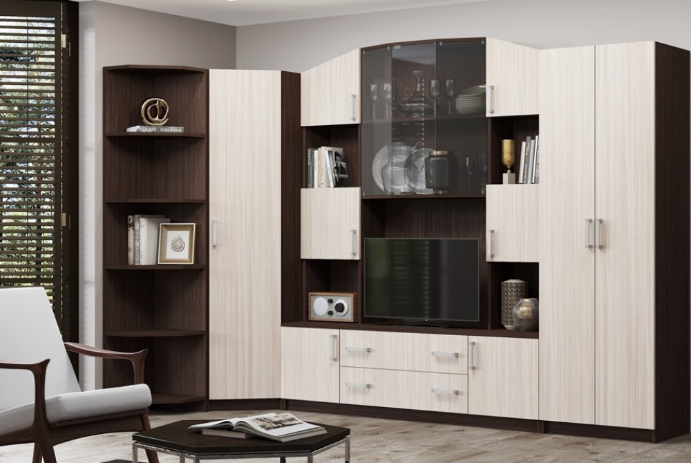 Модульный набор мебели для гостиной. Материал: ЛДСП.