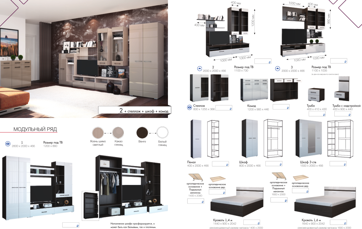 Модульная коллекция мебели для гостиной. Материал: ЛДСП.