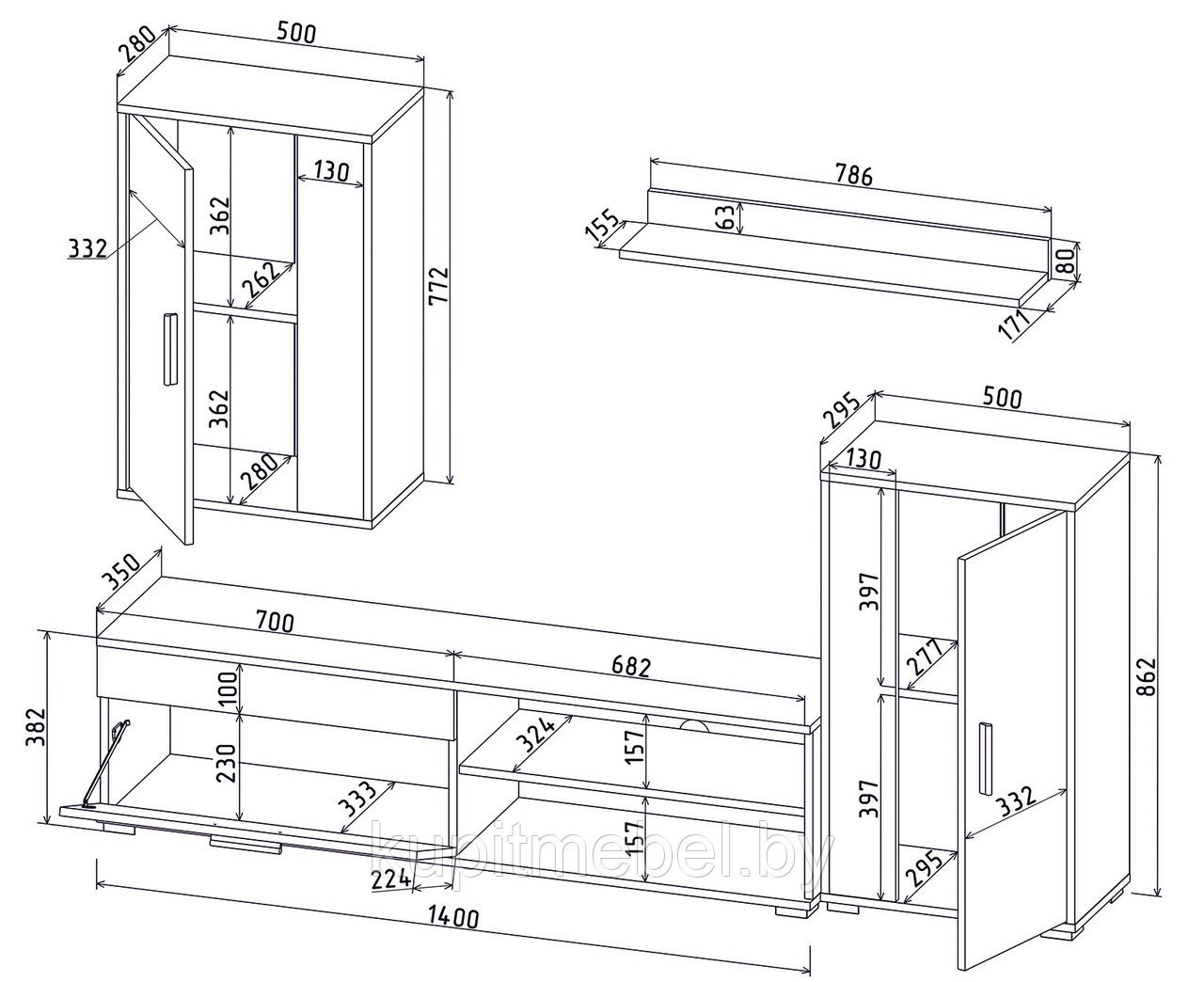 Размер (ШхГхВ): 2688х478х1860 мм. Материал: ЛДСП.
