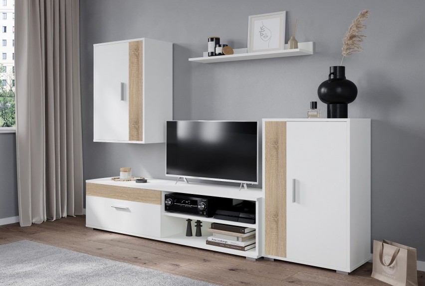 Гостиная «Милан» Комплект 2 - Белый глянец/Дуб сонома (BTS)