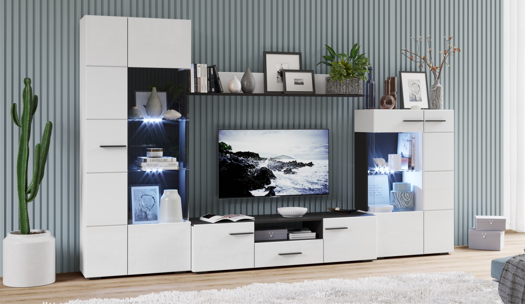 Гостиная «Йорк» со шкафом Белый/Белый глянец (3.0м)