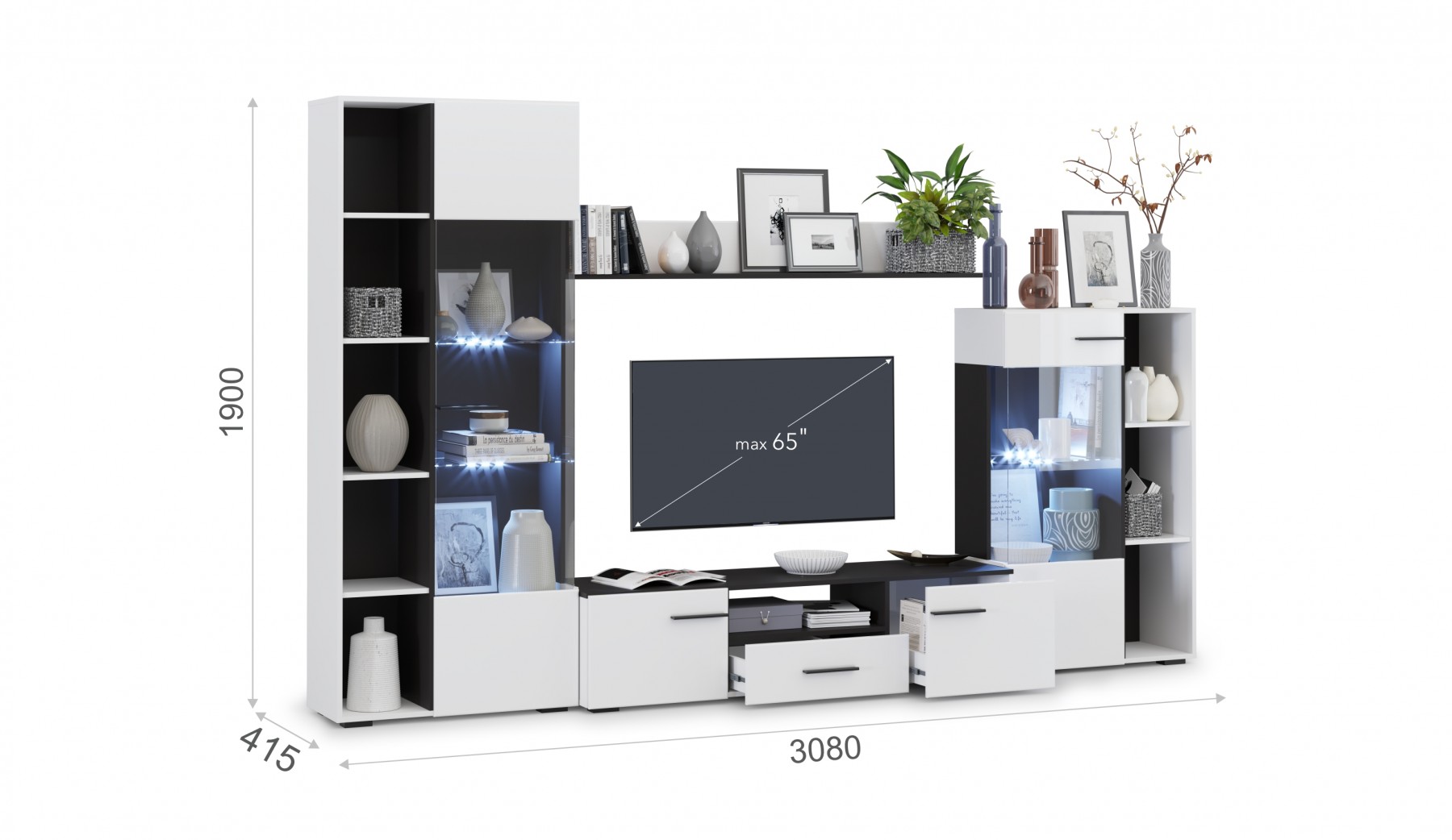 Стенка «Сканди» (белый гладкий/белый глянец)