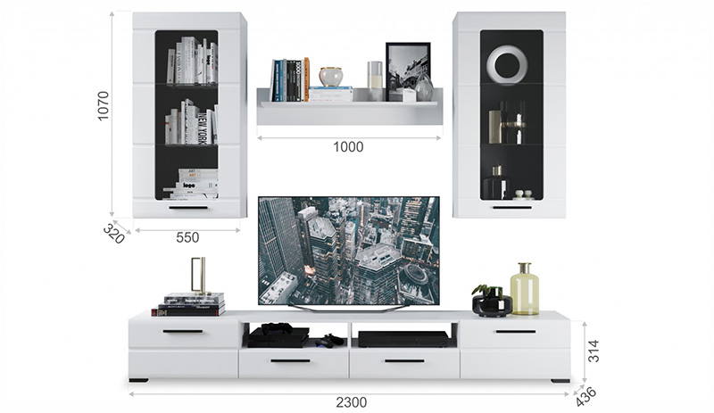 Модульная гостиная «Соната» Композиция 1 белый глянец