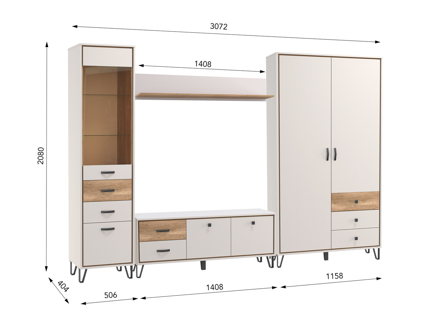 Габариты: В: 2080 мм, Ш: 3072мм, Г:404 мм.