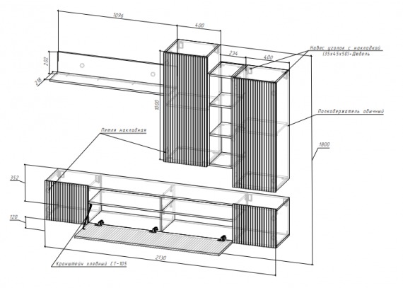 Размер: 4104x396x2000 мм. Материал: ЛДСП.
