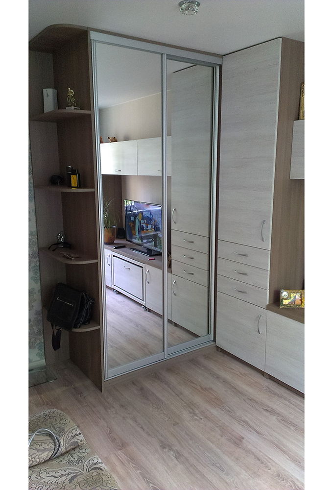 код 84892Конструкция со шкафом-купе. Выдвижная тумба. Функциональная модель.