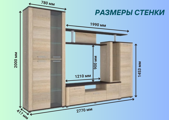 Размер (ШхГхВ): 2770х417х2000 мм.
