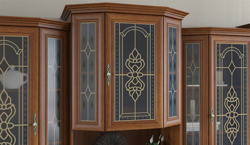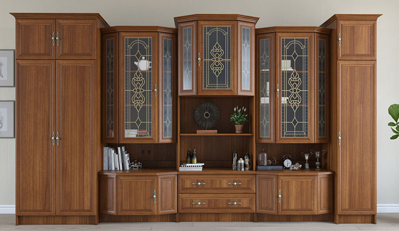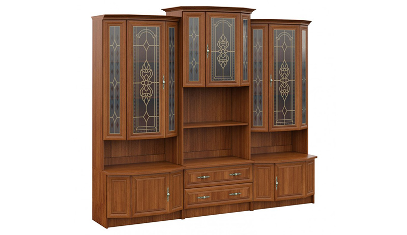 код 111727Классическая модульная стенка с витражным остеклением и изящными ручками.