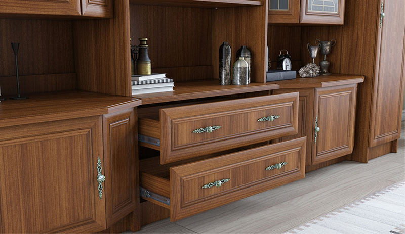 - Фурнитура: петли Boyard, эксцентриковые стяжки фасадов, силиконовые отбойники, телескопические направляющие полного выдвижения.