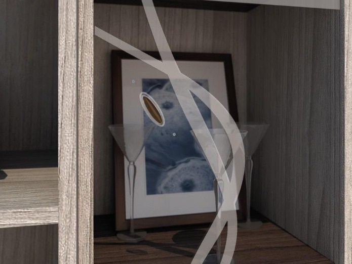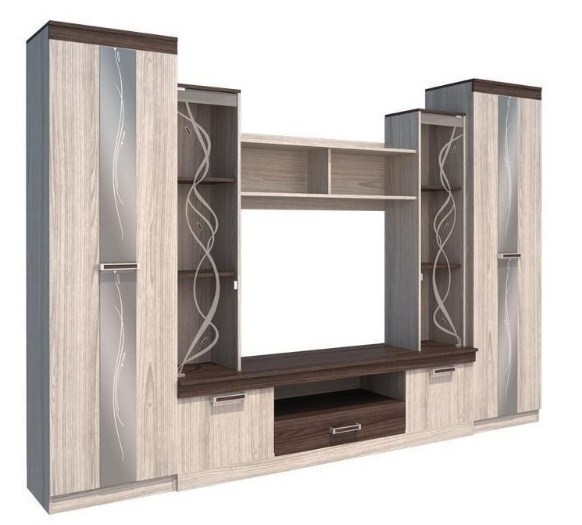 код 105692Остекленные полки с абстрактным рисунком. Комбинированный цвет фасадов.