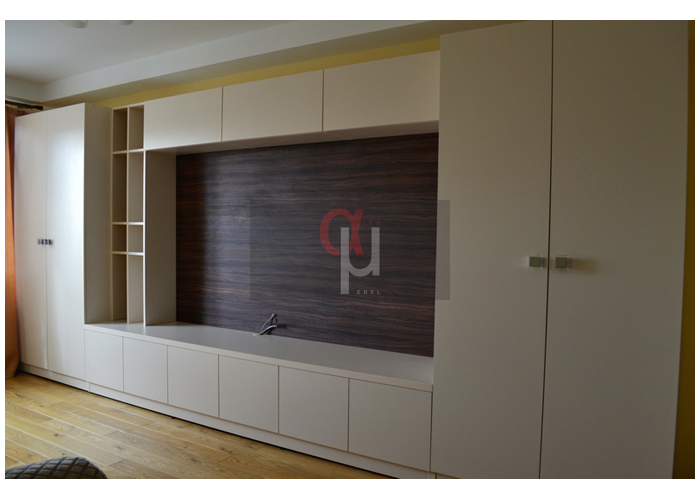 Современная модель с декорированным стеклом. Вместительные фасады. Ниша для ТВ.