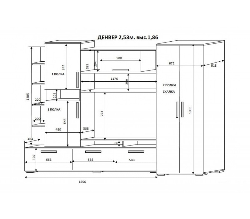 Размер: 2800x450x2000 мм. Материал: ЛДСП.