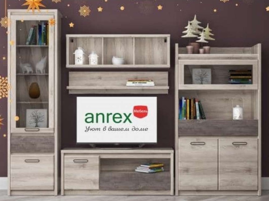 Размеры: 2400х450х2030 мм. Широкая тумба для ТВ. Разноуровневые модули.