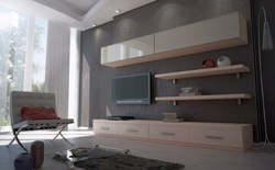 Роскошная модульная коллекция мебели с "волнистыми" фасадами для гостиной. Материал: МДФ покрытый плёнкой, ЛДСП.