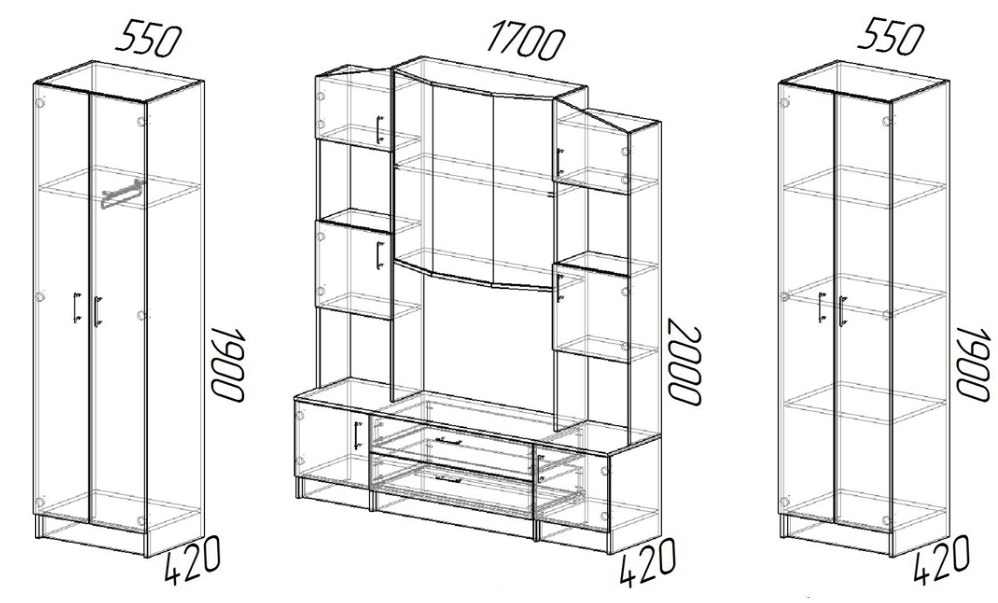 Размер (Ш х Г х В): 2800 х 420 х 2000 мм