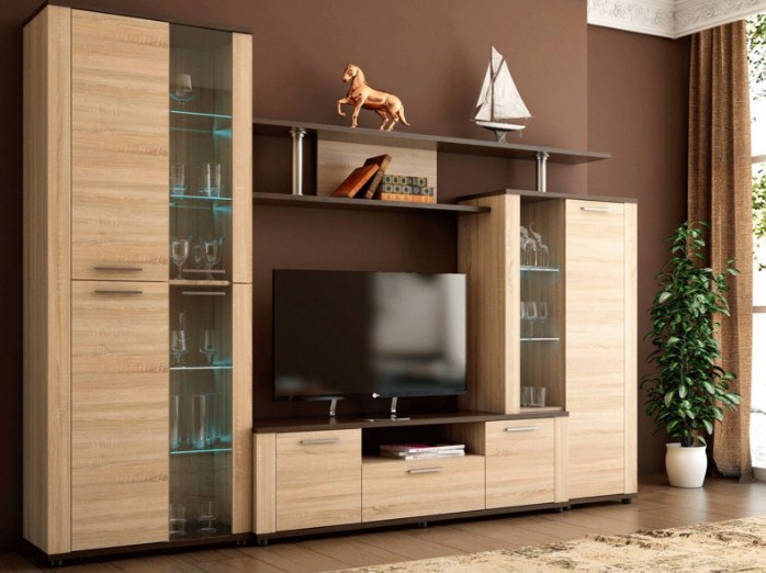 Модульный набор мебели для гостиной. Материал: ЛДСП.