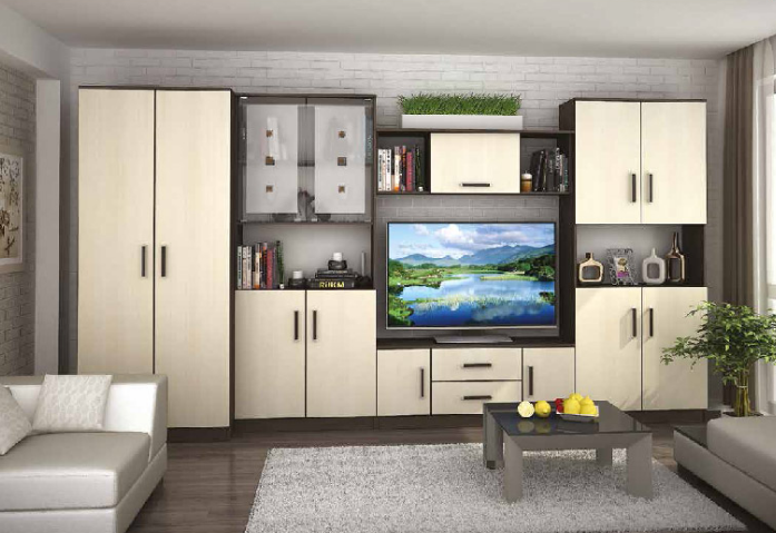 Современная модульная мебель для гостиной. Материал: ЛДСП.