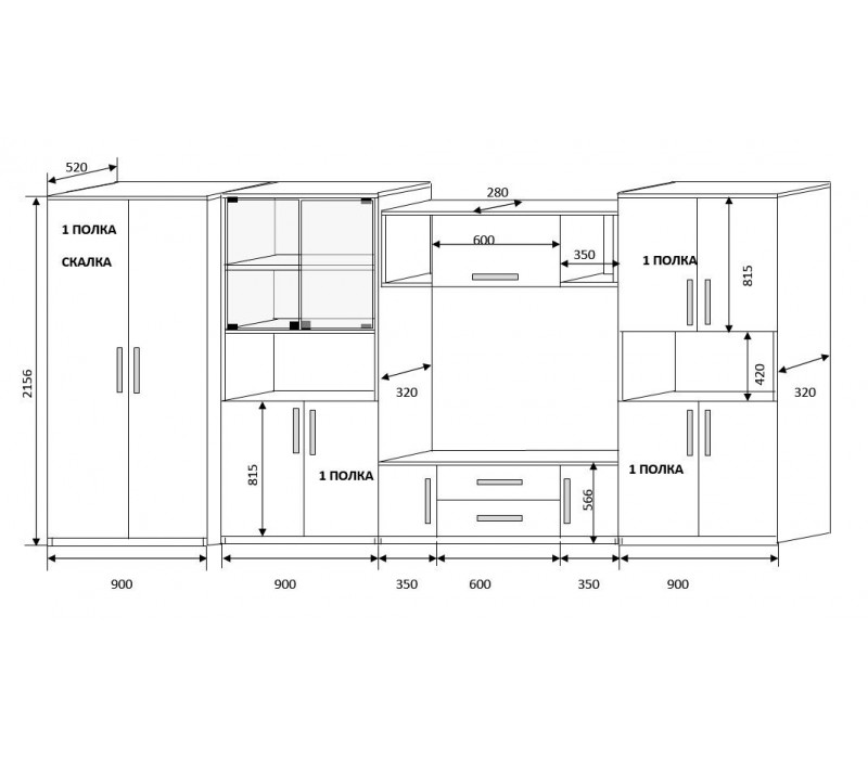 Размер: 2590x450x2100 мм. Материал: МДФ/ЛДСП.