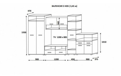 Размеры: ширина 3450 мм, 1930 мм, 470 мм.