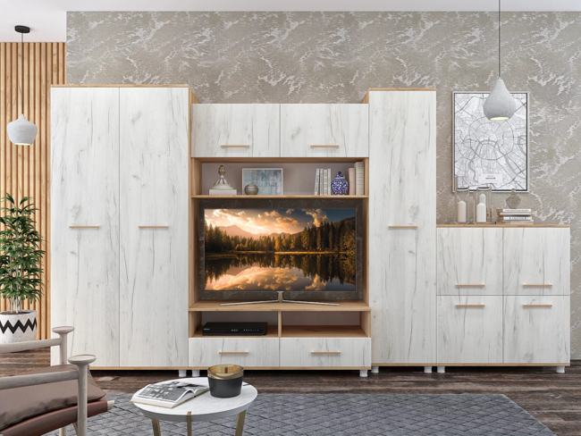 Стенка «Валенсия 3» Крафт золотой/Крафт белый
