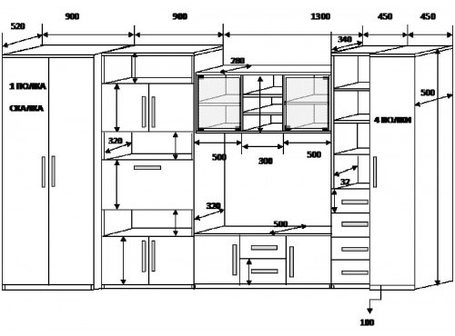Размер: 4104x396x2000 мм. Материал: ЛДСП.