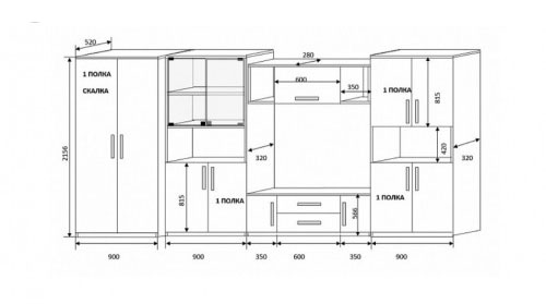 Размер: 2080x384x1620 мм. Материал: МДФ/ЛДСП.