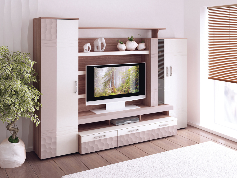 Шкаф распашной, пенал, напольная тумба, ниша для ТВ, открытая навесная полка.