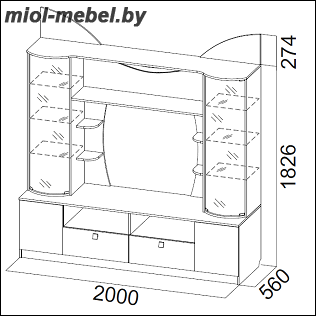 код 83183Небольшая стенка с частичным радиусным остеклением и закрытым нижним фасадом.