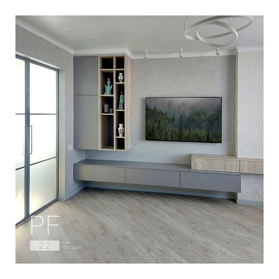Ниша ТВ: 1200х1070 мм. Фасады с фактурой дерева.