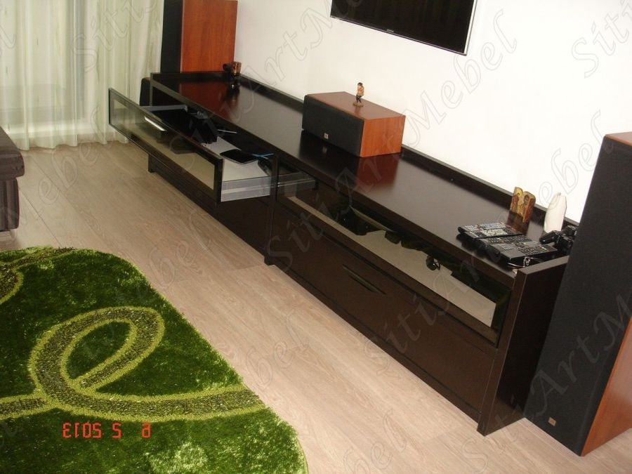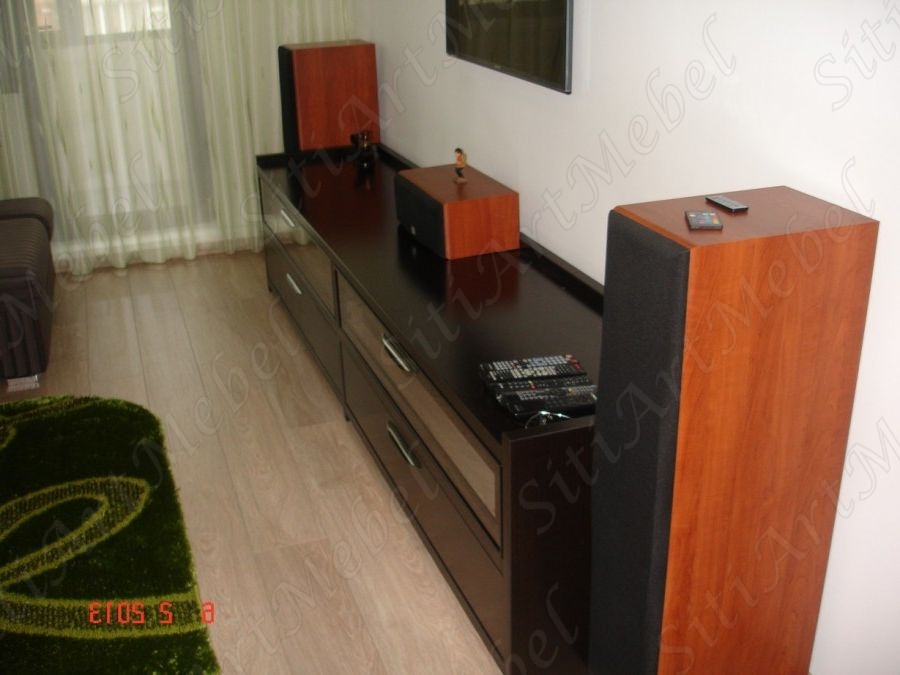 Современная удобная тумба, выполненная из качественных материалов, укомплектована выдвижными ящиками и нишей для аудио- и видеотехники. Широкая столешница позволит установить не только большой телевизор, но также колонки или некоторые предметы декора.