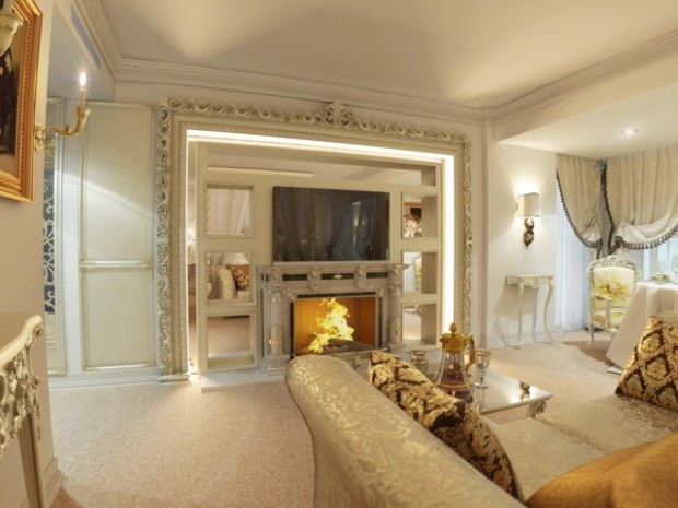 Современный дизайн с фрезеровкой. Створки открываются при помощи выступа фасада.