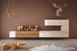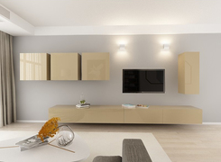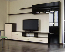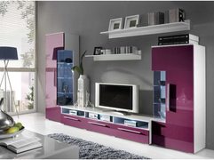 Глянцевые гостиные отлично смотрятся как в интерьере классического стиля, так и в хай-тек. Дополнительное отражение света от глянцевой поверхности придает воздушность и визуально облегчает конструкцию. Такие стеллажи не будут смотреться громоздко и массивно независимо от своего размера.