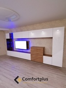 Горка с подсветкой и двумя навесными модулями. Тумба под ТВ с контрастными вставками.