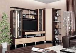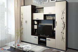 4-х створчатый шкаф, тумба под ТВ, навесная полка, 2-х створчатый шкаф для одежды.