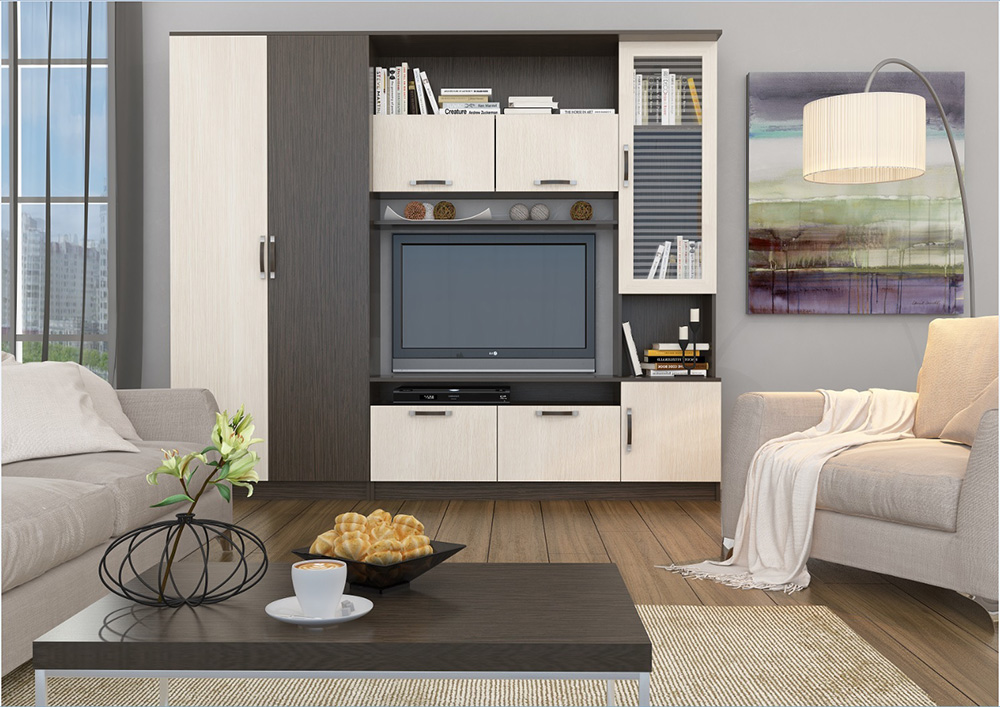 Современная модульная мебель для гостиной. Материал: ЛДСП.
