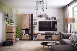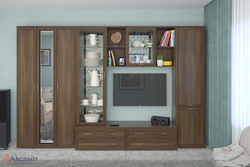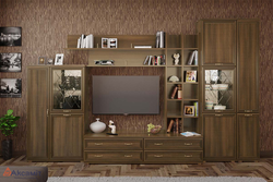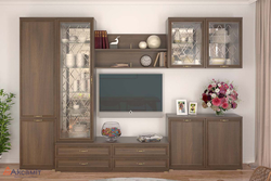 Модульная коллекция мебели для обустройства гостиной. Материал: ЛДСП, МДФ покрытый плёнкой.