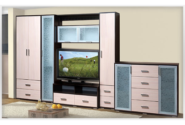 Модульная коллекция корпусной мебели для гостиной. Материал: МДФ покрытый плёнкой, ЛДСП.