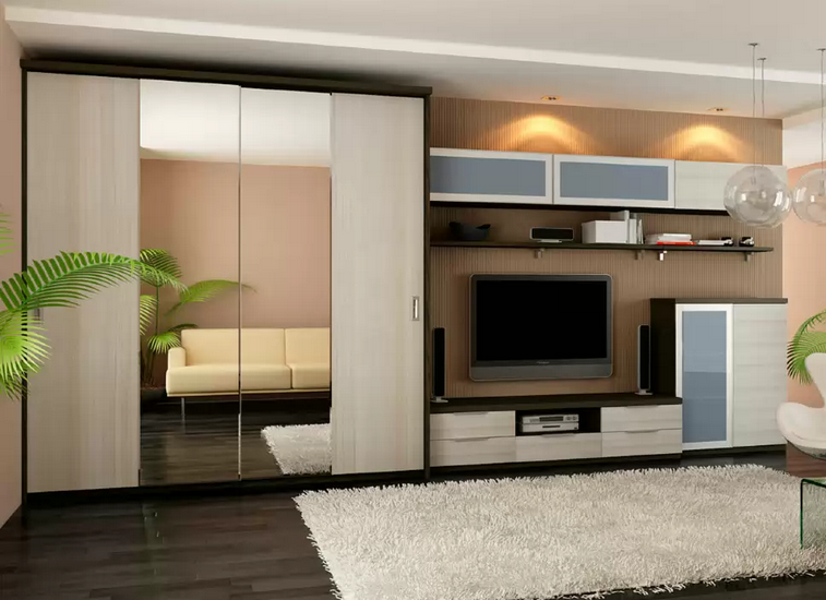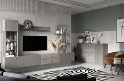 Модульная коллекция мебели для обустройства гостиной. Материал: ЛДСП, МДФ покрытый плёнкой.