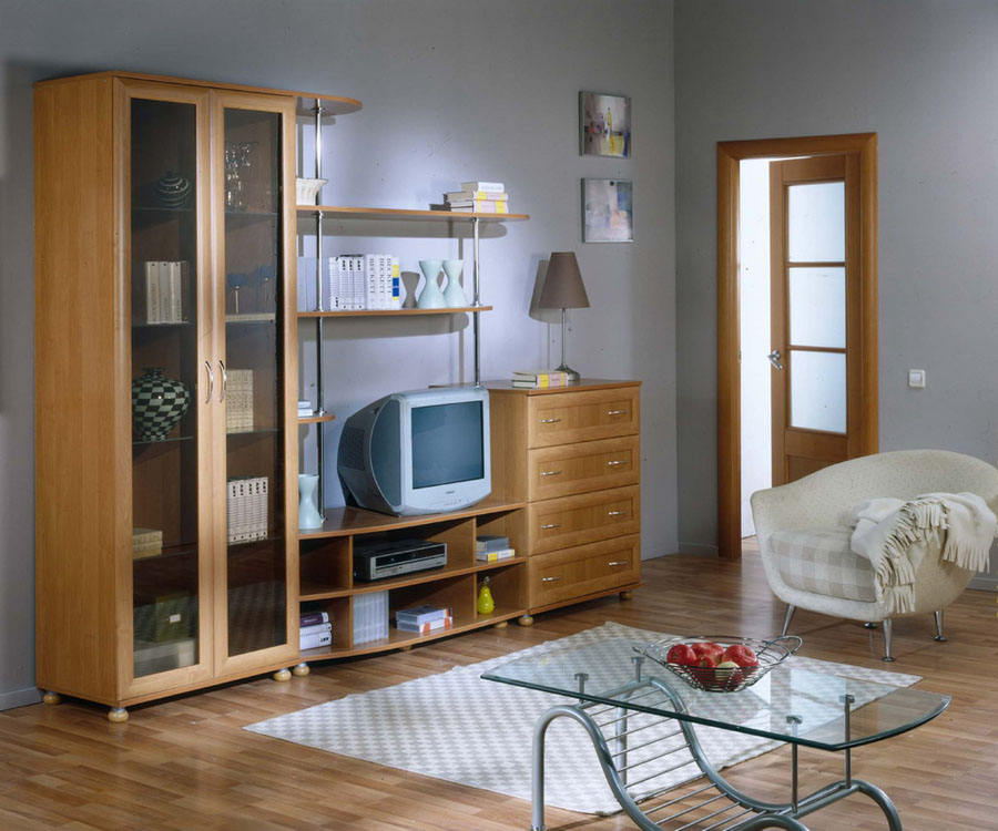 Открытые полки, ниша для ТВ, витрина. Стильный и современный дизайн.
