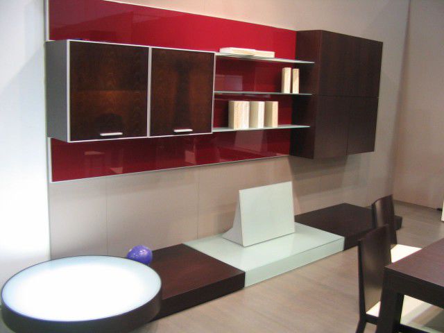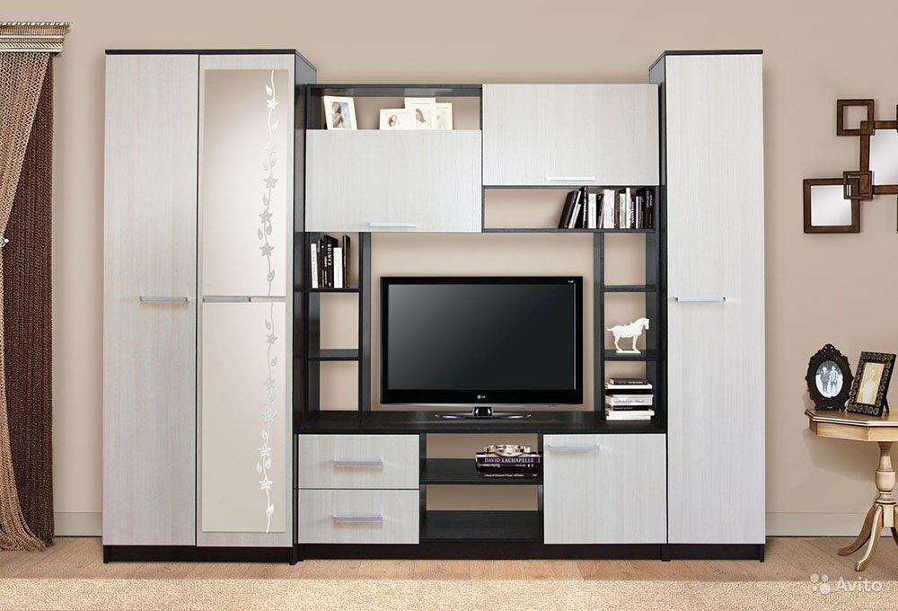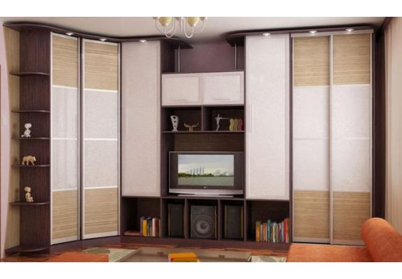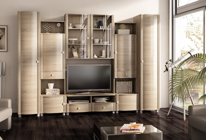 Стенка в зал со светлыми фасадами и сферическим остеклением.