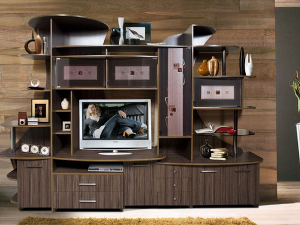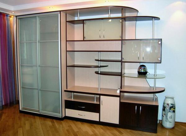 Стенка с выпуклыми фасадами и тонированным остеклением.