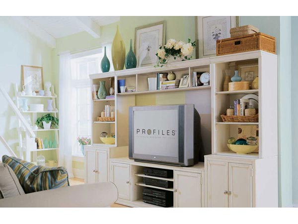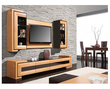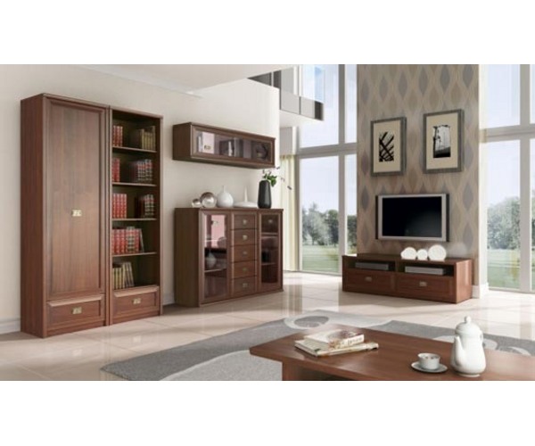 Комплектуется настенными витринами и большой панелью под ТВ.