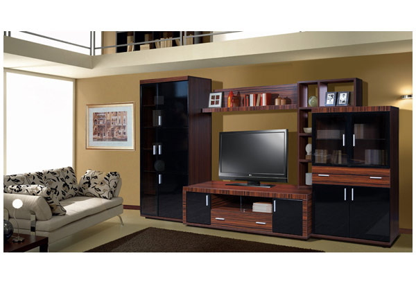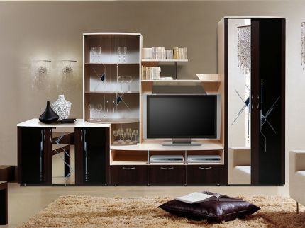 Современная стенка в контрастной расцветке фасада, с антресольной полкой.