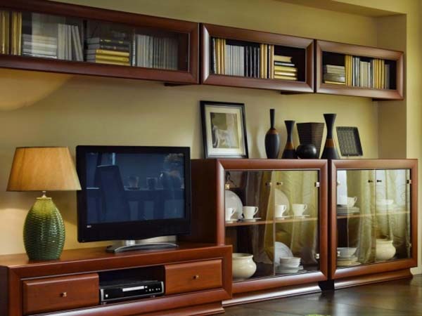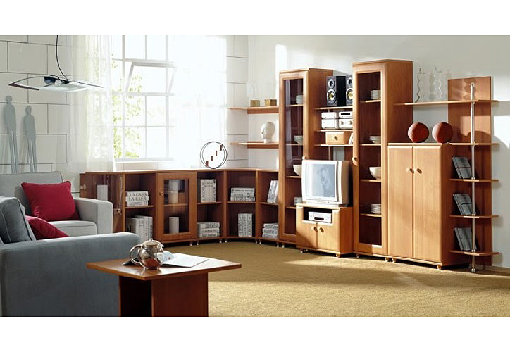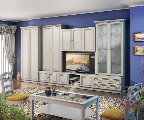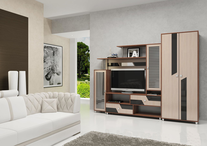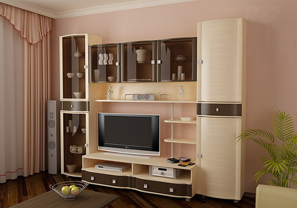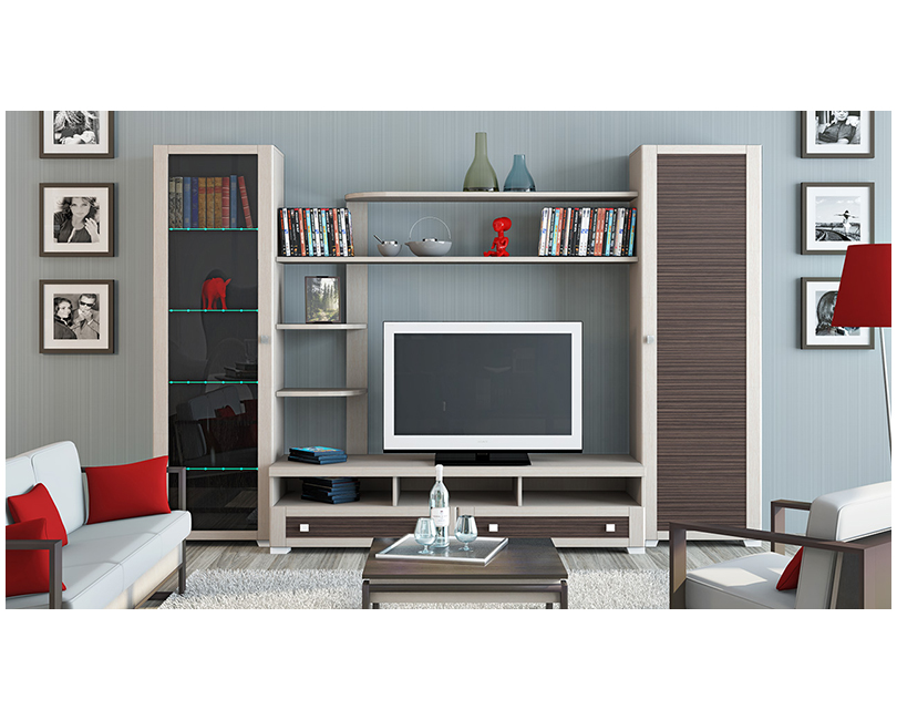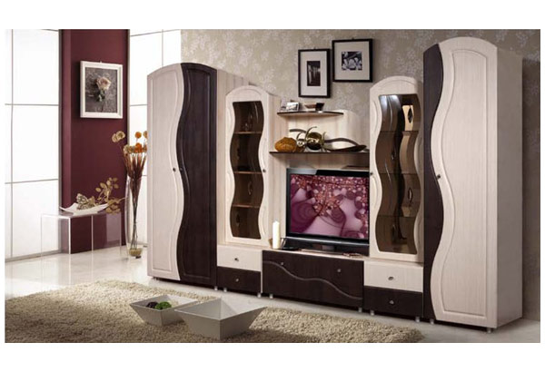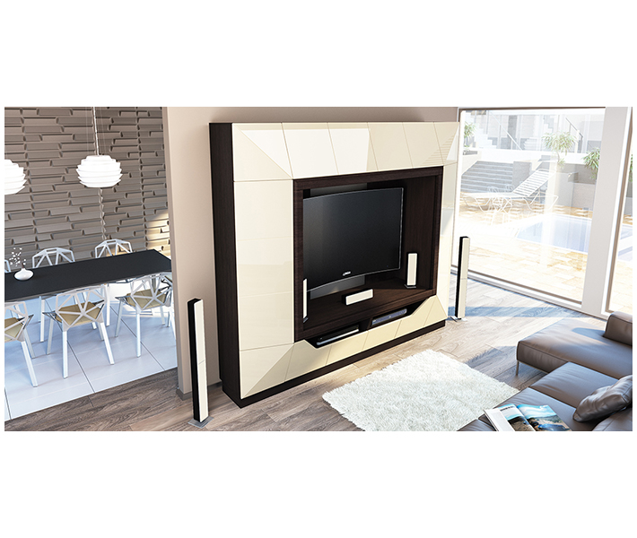 Материал: ЛДСП. Размер: 2110х3275х5220 мм. Размер тумбы под ТВ: 510х1400х520 мм.