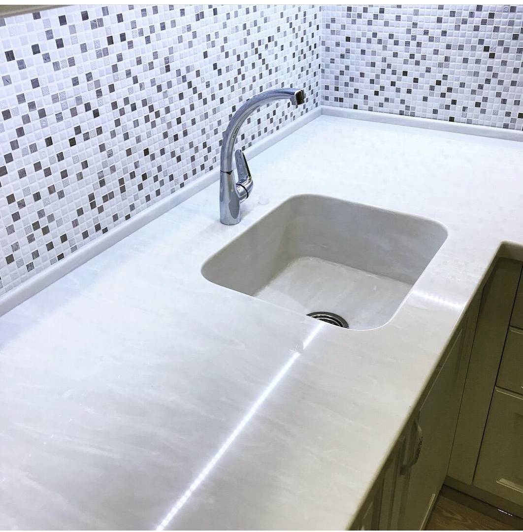Белая угловая столешница для кухни. Изготовление под заказ по индивидуальным размерам. Качественные материалы. Точное соблюдение сроков. Доставка на дом.
